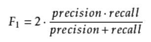 F1-score是精确率和召回率的调和平均值,之所以是调和平均是我们可以对精确率和召回率给予不同的权重,默认情况下两者的权重是一样的。计算公式如下: