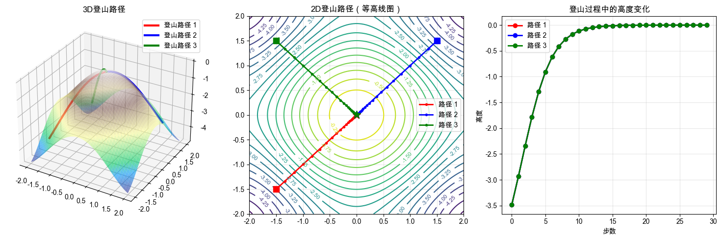 我: "是的!而且你看'快速路径'虽然步数不是最少,但每一步都很大,说明学习率设置得很合适。"