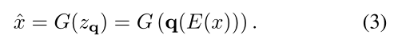有了E和G,根据它们编码的codebook索引来表示图像。图像x的量化编码由zq = q(E(x)),然后通过将每个code替换为其在码本Z中的最近邻code的索引来获得: