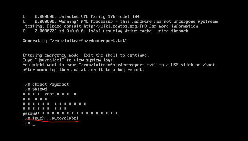 10.然后输入touch /.autorelabel 用来更新系统信息