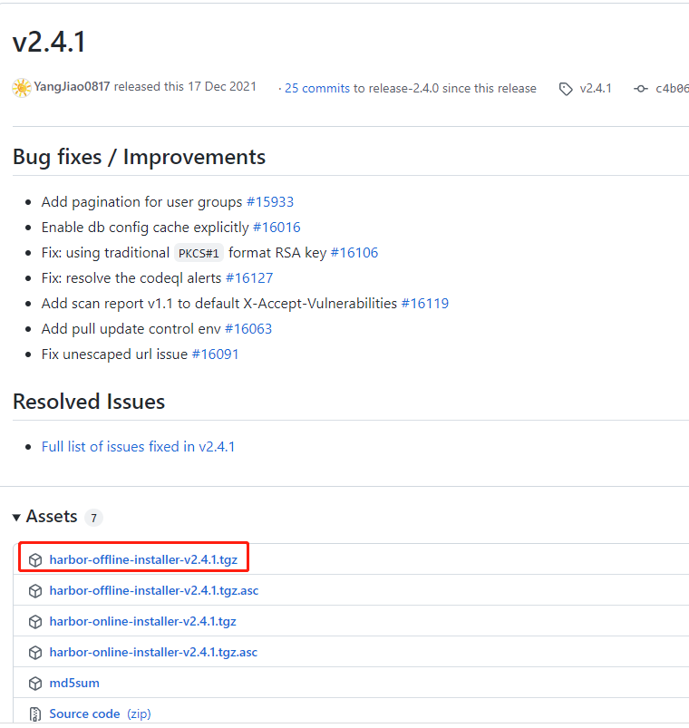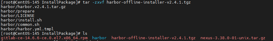 tar -zxvf harbor-offline-installer-v2.4.1.tgz