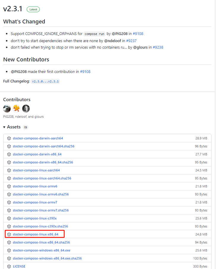 先到github(https://github.com/docker/compose/releases)查看docker-compose的最新版本号。