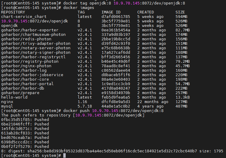 docker tag openjdk:8 10.9.70.145:8072/dev/openjdk:8