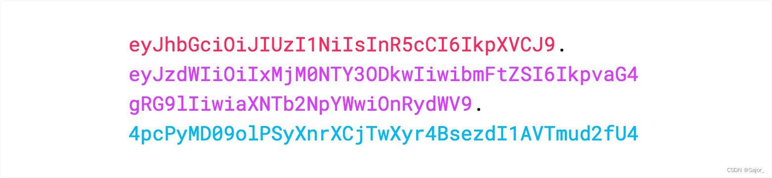 在计算出签名哈希后,JWT头,有效载荷和签名哈希的三个部分组合成一个字符串,每个部分用.分隔,就构成整个JWT对象