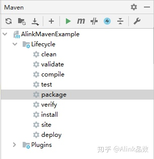 在Maven窗口中点击执行"package"操作,操作正常执行完成。在该项目文件夹的target子文件夹下可以看到打包出来的 AlinkMavenExample-1.0-SNAPSHOT.jar