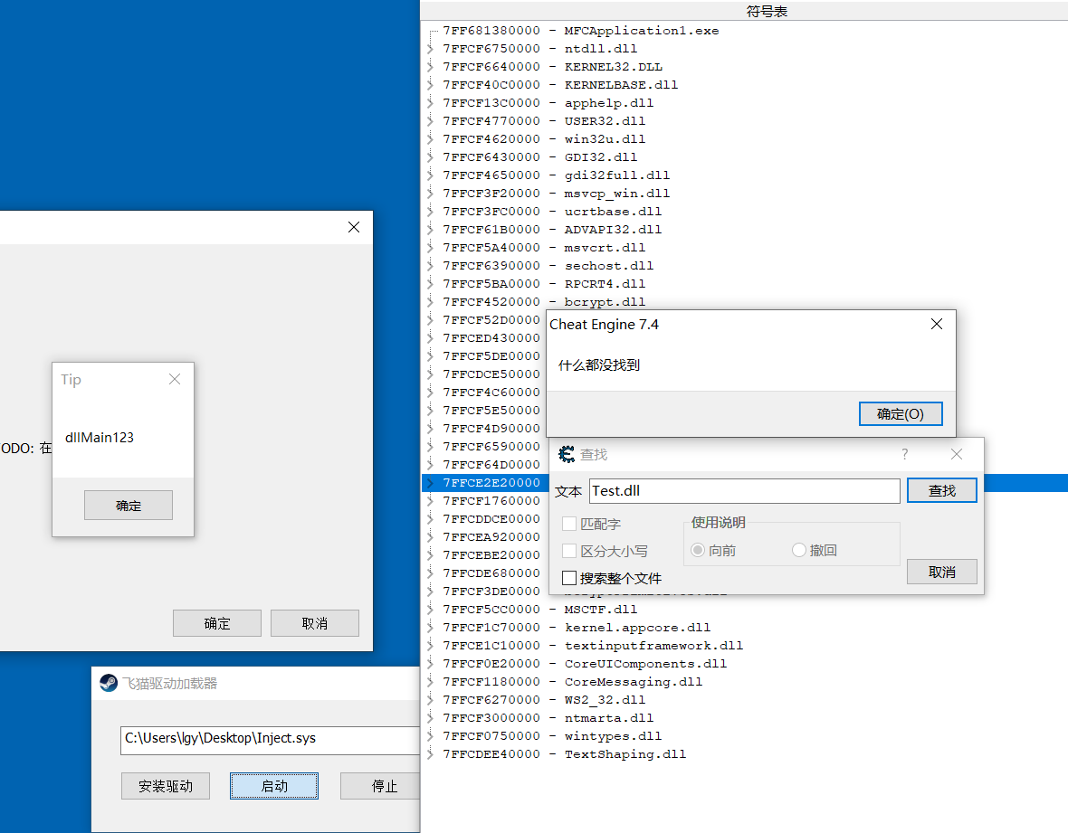 可以看到注入Test.dll成功了,枚举模块的地方也找不到这个dll,整体来说了解了原理及参考大佬的代码,感觉没有想象的那么高深莫测。嗯, 就这样吧!