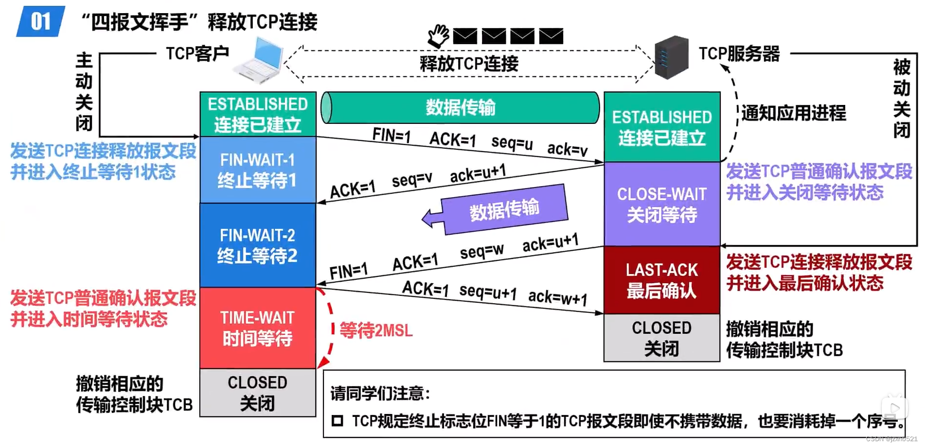 “四报文挥手”释放TCP连接