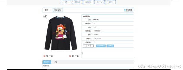 商品信息,在商品信息页面可以查看商品名称、价格、单次购买、库存、商品类型、规格、上架时间、点击次数等内容进行购买、评论或收藏等操作,如图5-3所示。