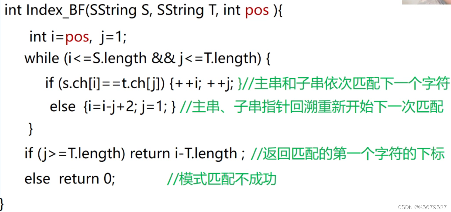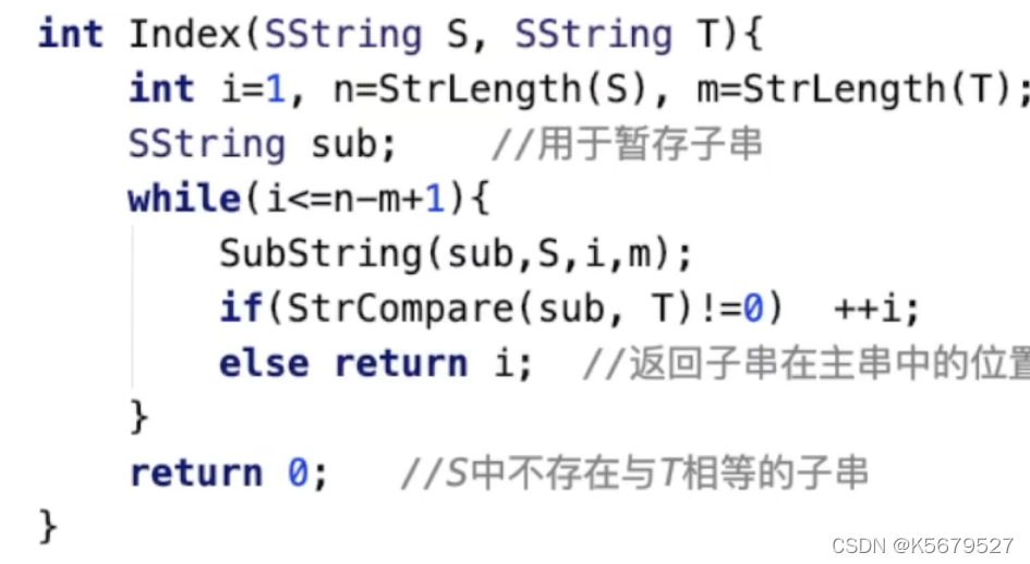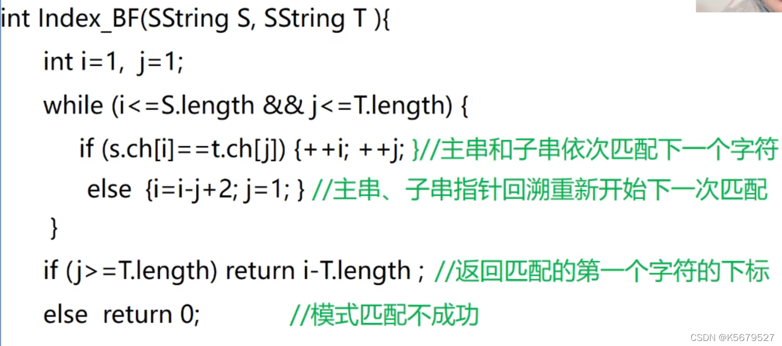 2.串的匹配算法:确定主串中所含子串(模式串)第一次出现的位置(定位)