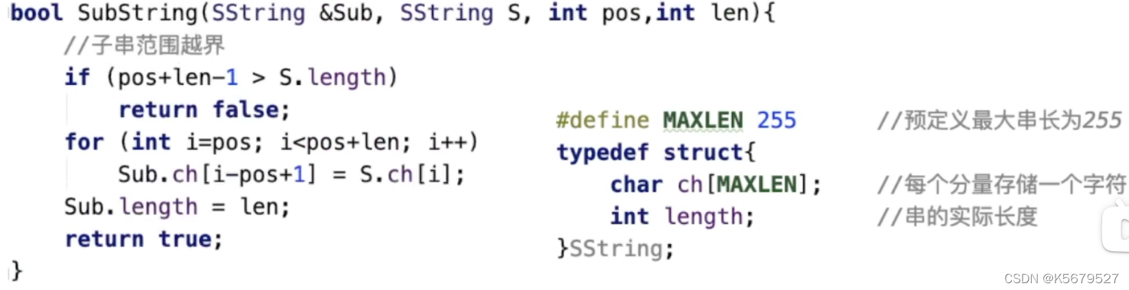 - 串相等:当且仅当两个串的长度相等并且各个对应位置上的字符都相同时,这两个串才是相等的。