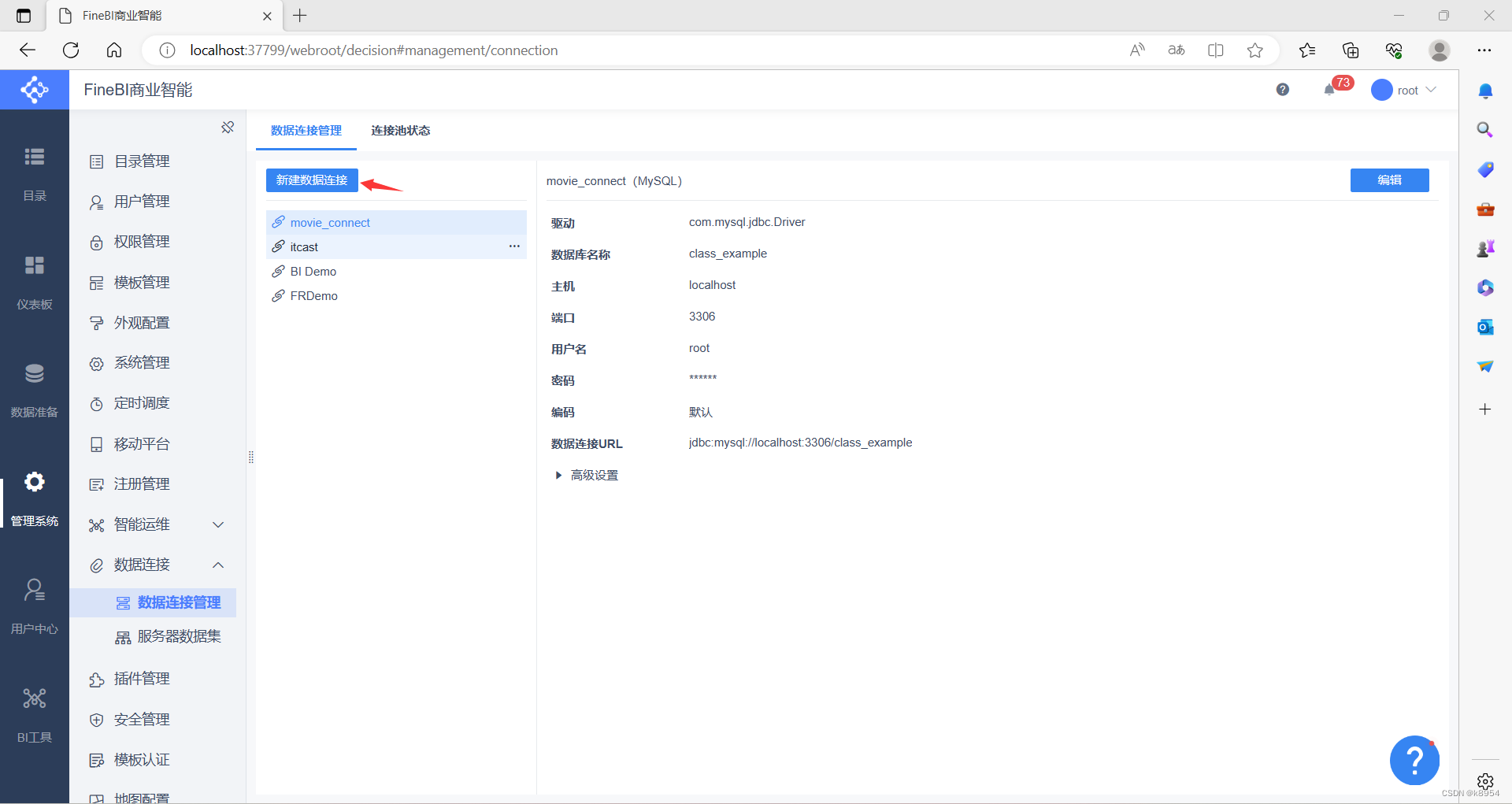3.1点击[管理系统]中的数据连接管理,再点击【新建数据连接】。