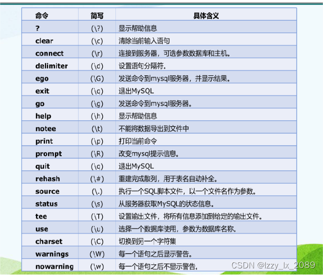 DROP DATABASE 数据库名;。 - 查看表结构:使用