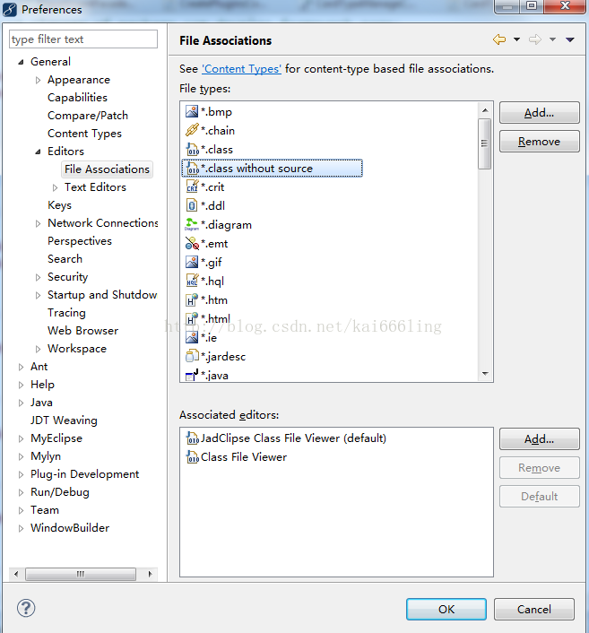这里需要注意的是,不是选.class,而是选.class with source ,将jadClipse Class File Viewer设置为default。如果没有这个选项,add这个选项,即JadClipse Class File Viewer