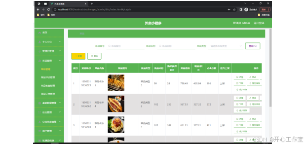 如图5.2显示的就是菜品信息管理页面,此页面提供给管理员的功能有:查看已发布的菜品信息数据,修改菜品信息,菜品信息作废,即可删除,还进行了对菜品信息名称的模糊查询 菜品信息信息的类型查询等等一些条件。