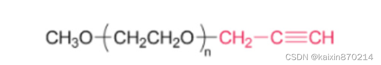 mPEG-Alkyne其结构由两部分组成:一个甲氧基聚乙二醇(mPEG)链和一个炔基(Alkyne)末端。