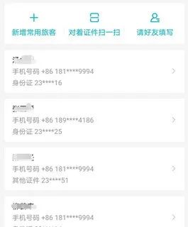 前面也提到,犯罪分子精心设计的这么一套犯罪脚本,在身份信息获取这种比较容易的环节上,一定是会有备用方案的,目前据我所知的在获得短信权限的情况下比较容易获取的如各类连锁酒店APP(如华住、锦江)、商旅订票类(如去哪儿),这些包含身份证信息的APP和网站,对于身份证号码信息的泄露风险并不是说不知道,只是在业务的“用户体验”面前,安全已经不算个问题了,毕竟我这种案件的数量还是不多。以去哪儿为例,在常用旅客列表中,对身份证信息进行了屏蔽显示,但点击进入信息编辑界面时就明文展示了:
