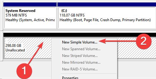 3、初始化完成后,右键硬盘选择“新建简单卷”。