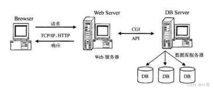 在早期,一些使用HTML语言编写的文件,再集合一些其它资源文件就可以组成一个最简单的Web程序,了解了Web程序也需要了解Web站点,它们之间的关系就是一个或者多个Web程序可以放在Internet上的一个Web站点(Web服务器)中进行使用。可以说Web应用程序的开发也带动了B/S这种网络结构模式的兴起。B是Brower(浏览器)的首字母,S是Server(服务器)的首字母,两个首字母进行组合就成了网络结构模式的简称B/S。由于这种结构模式通过安装在客户端的浏览器进行服务器的访问,可以把程序的核心功能安排在服务器中进行处理,给程序的开发,后期使用和维护省去了许多工作。图2.1展示的就是使用这种架构开发的程序的工作原理。