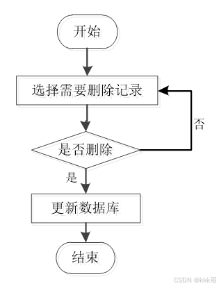 当从程序里面删除某种无效数据时,遵循程序的信息删除流程(如图3.4所示),先要选中操作者需要删除的数据,程序为了预防操作者误删信息,也会进行提示,当操作者真正确定要删选中的信息时,该信息就会从数据库中被永久删除。