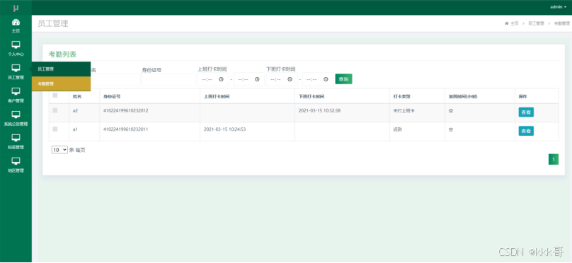 如图5.2显示的就是员工管理页面,此页面提供给管理员的功能有:查看考勤记录。