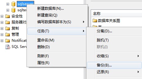 以备份sqlserver为例,右击->任务->备份,如图(1-2)。