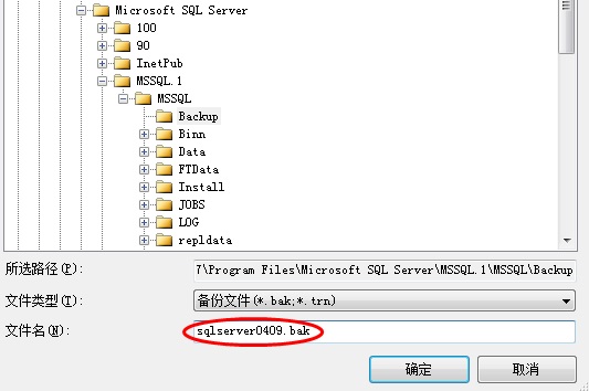 点击选择目录操作后,出现(图1-5)界面。重新更名文件,并加上后缀(不然备份出来的文件没有后缀),然后确定。