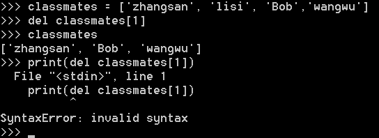 del是一条命令,他可以删除一个变量,即将变量从内存中删除,相当于变量没有定义了,也可以删除list中的一个元素: