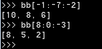 如果加上步长参数,则上面总结的结论就不适用了,索引可以左大右小,但是这时步长必须是负的。这时就是反序取数了。