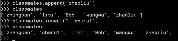 追加,就是在list最后增加一个元素,使用listvar.append(),插入,就是在 指定索引处插入一个元素,原来的这个索引位置及以后的所有元素也自动后移一位,使用listvar.insert()。