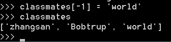 用中括号[],其中以逗号分隔各个元素。classmates就是一个list变量了。