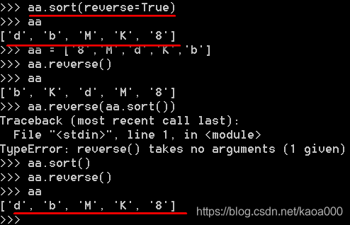 sort()和reverse()方法list.sort(key=None, reverse=False) :对列表中的元素进行排序