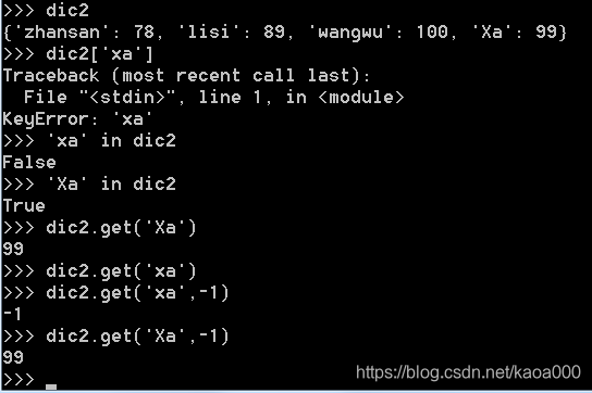 get()方法,如果存在对应的key,返回key对应的value,如果不存在key,默认返回None,可以自己加第二个参数,指定不存在key时返回的值。