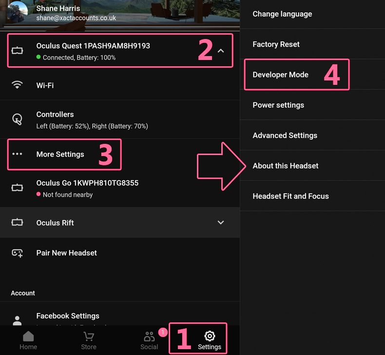 - 打开 Oculus 官方手机app,选择屏幕右下方的 【设置】。