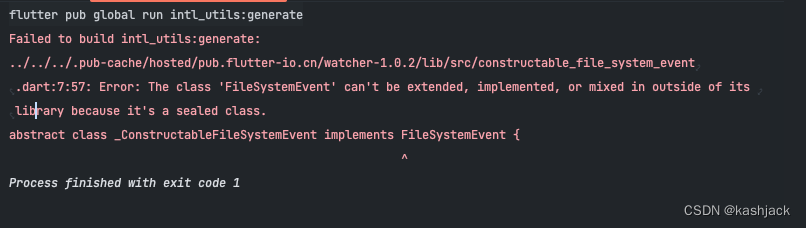 ../../../.pub-cache/hosted/pub.flutter-io.cn/watcher-1.0.2/lib/src/constructable_file_system_event.dart:7:57: Error: The class 'FileSystemEvent' can't be extended, implemented, or mixed in outside of its library because it's a sealed class.