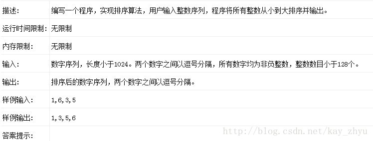 其实就是排序算法嘛,直接快排,比较好些,效率也可以,没什么好说的。这道题的难点在于输入的时候,是以字符串形式输入,然后事先不知道当前这一次排序有多少个数字,所以需要一点技巧。废话不多说,直接上代码,时间紧急,可能不是很漂亮。