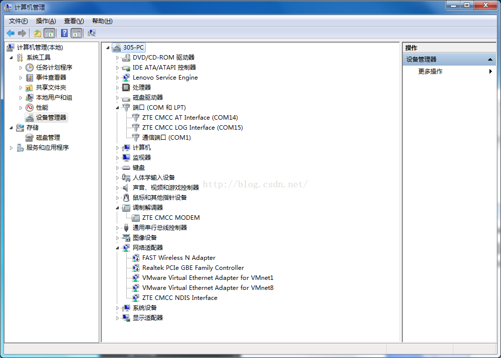 2. 安装完成之后再设备管理器中可以看到多了4个设备,端口里多了2个,多了一个中兴的调制解调器,多了一块网卡。证明驱动安装好了。