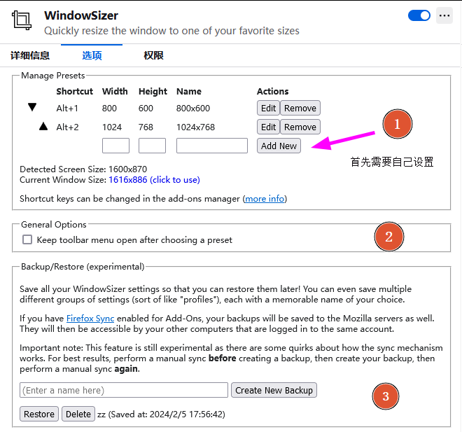 Firefox 插件,“扩展和主题”、搜索关键字:windows resize