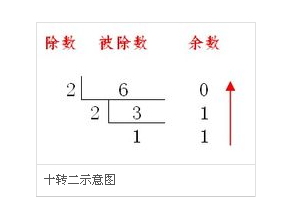 4、商为0,运算停止,将所有余数倒序排列为110,所以十进制6的二进制表示为110