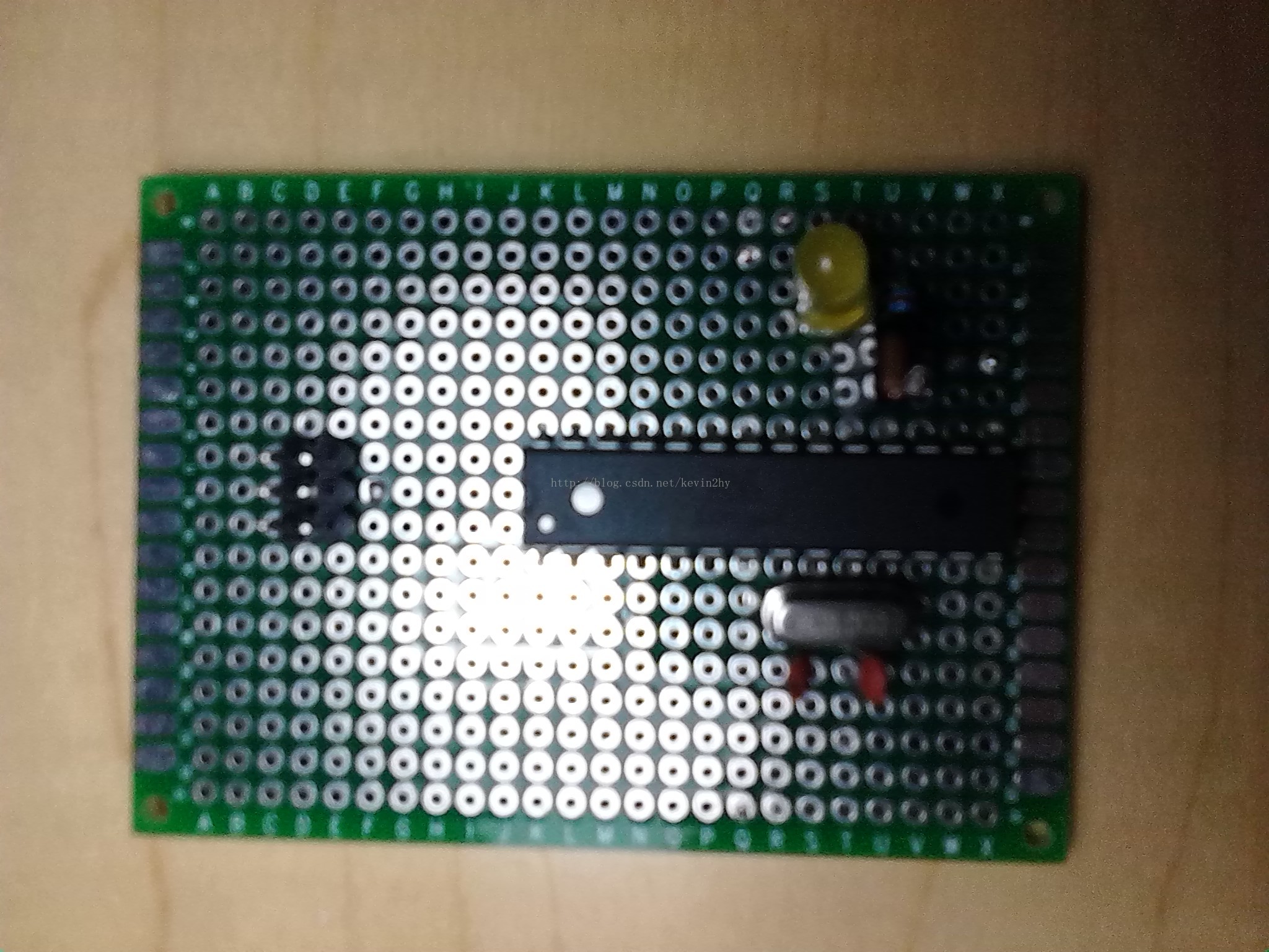 继之前成功制板后,又做了连续三块失败的板子,总结一下,第一块和第二块板,失败原因都是因为使用了之前方案的排母,而28Pin排母实际上并不适用于单片机座,单片机针脚有点短,导致连接单片机后,存在接触不良的问题,经过万用表量了一下,反面的针和单片机脚,有好几个脚都不通;做第三块板时,排除了排母,直接将单片机焊在板子上,但由于之前两次失败,心烦意乱,导致焊第三块板时将单片机装反,结果后面怎么检查线路都没问题,却就是无法烧录,经过仔细对比后,总算是发现了这个低级错误,真是恨不得自抽一耳光。