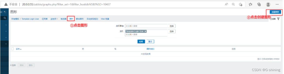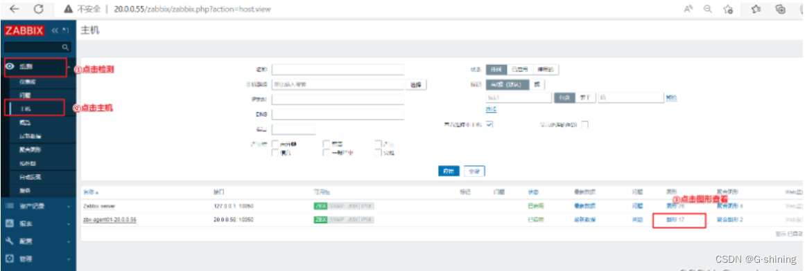 此时就点击【监测】中的【主机】,点击你关联主机的【图形】,即可查看到相关的监控项指标