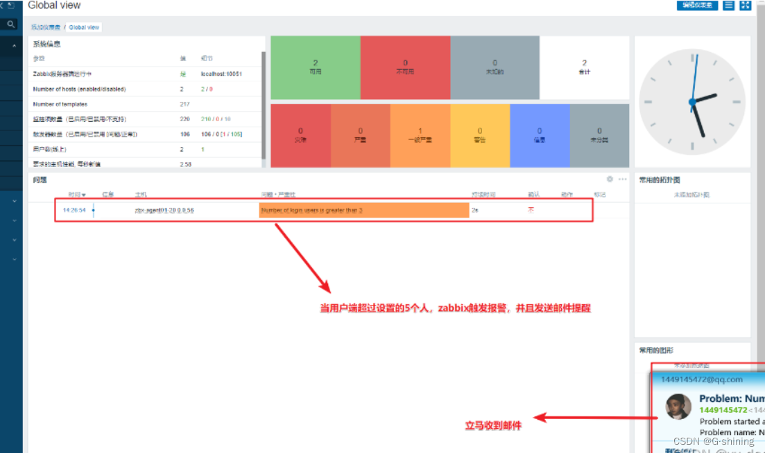先在客户端中添加大于5个用户登录。然后出发报警。(待问题解决后,报警信息会自动消失)