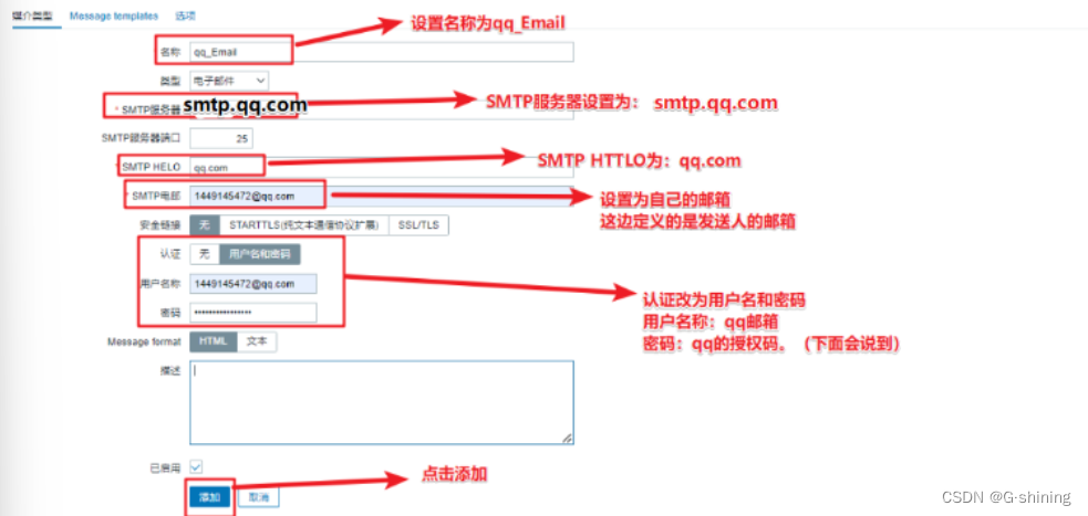 【SMTP电邮】设置成 自己的邮箱地址,例如 1449145472@qq.com