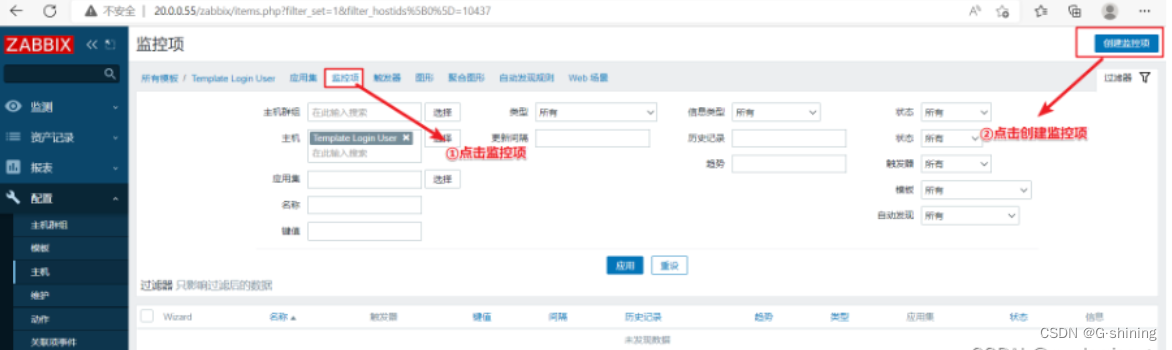 点击上方菜单栏【监控项】,点击【创建监控项】