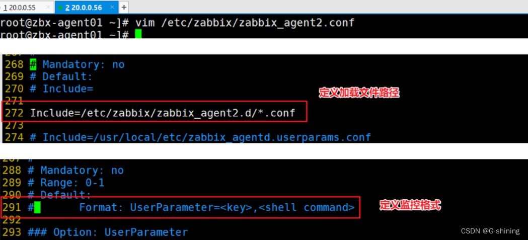 Include=/etc/zabbix/zabbix_agent2.d/ *.conf #268行,定义加载的文件路径