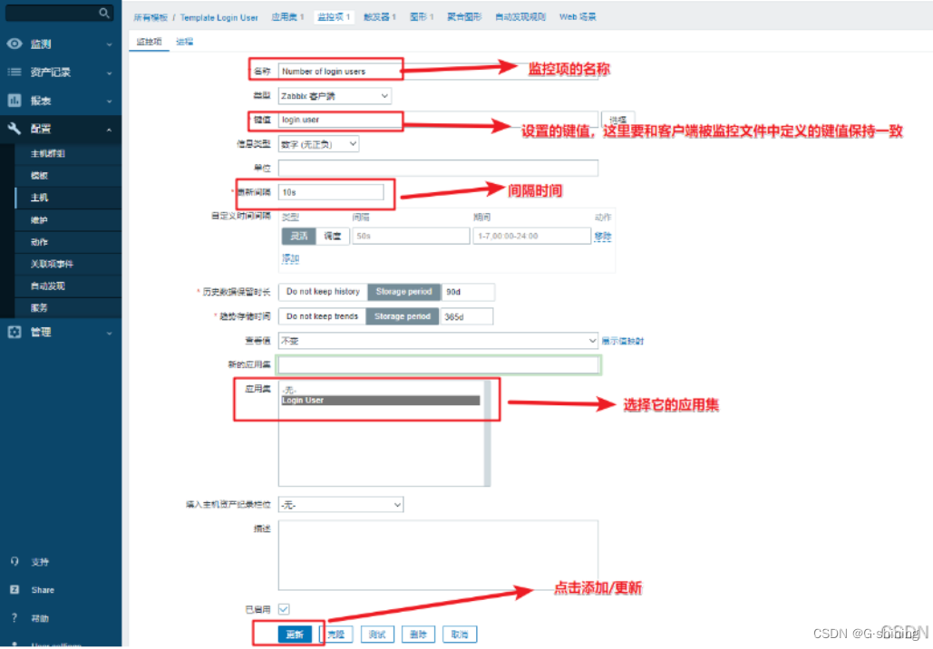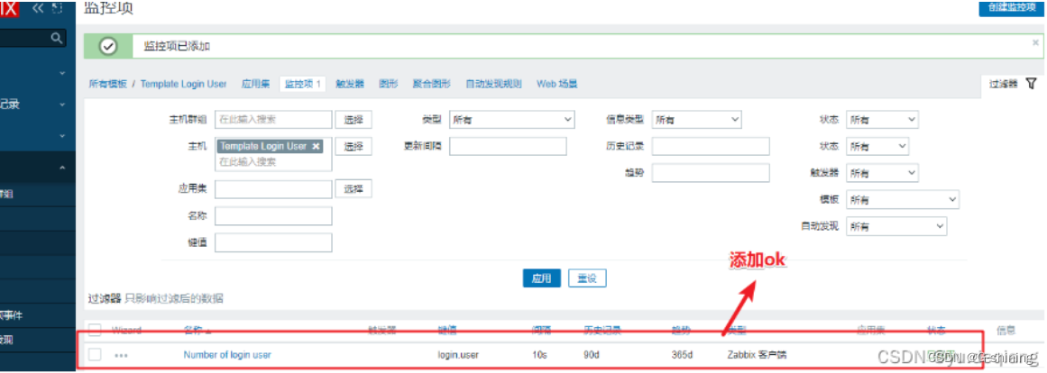 【键值】设置成 login.user #键值必须要与自定义的监控项配置文件中设置的保持一致